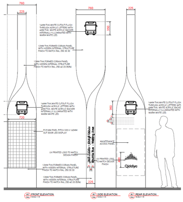 Part of Saudi Arabia’s visionary entertainment and cultural mega-development, Qiddiya Park represents innovation and modern design. Our team was responsible for the structural design and load calculations of all signage and steel structures, ensuring safety, stability, and compliance under wind and seismic load conditions.