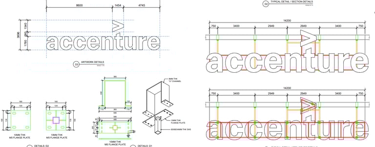 As part of Accenture’s corporate facility branding initiative, our team handled the structural design and load calculations for all indoor and outdoor signage systems. The work included wind and seismic analysis to ensure stability, safety, and alignment with the client’s architectural and aesthetic requirements.